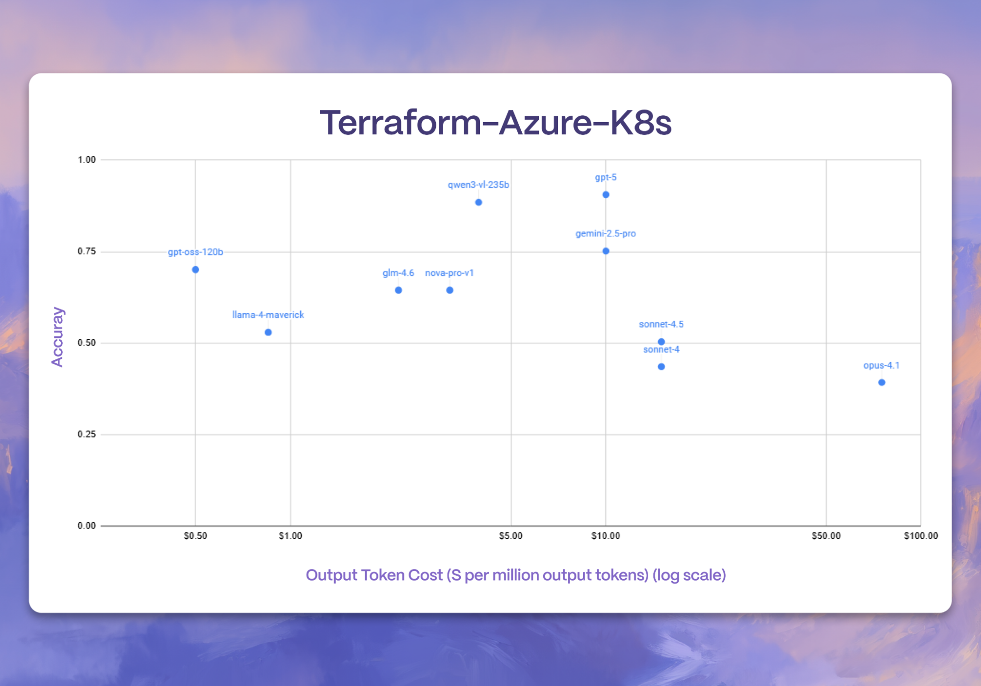For the first time, we release a new suite of Terraform-based benchmarks focused on evaluating models for SRE tasks. In our Terraform multiple choice benchmark focusing on Kubernetes questions related to Azure, we begin to observe larger gaps compared to the GMCQ subtask. These gaps also persist when we run our SRE Terraform benchmark on these models, where we observe that GPT-5 still tops the closed source models we surveyed, and Qwen-3-235B beats our selection of open source models.