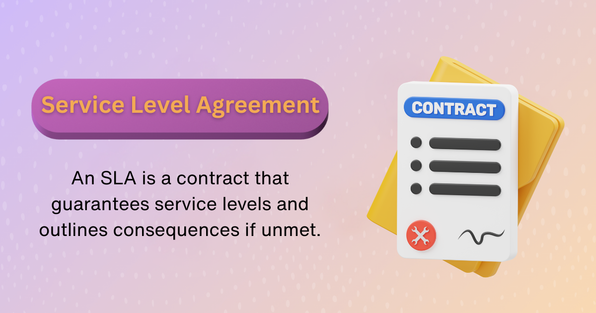 An SLA is a contractual agreement between a service provider and a customer. It defines the minimum acceptable service level and the remedies offered if the provider fails to meet those commitments.