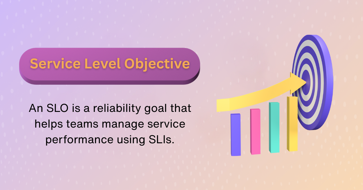 An SLO is the internal target for an SLI. It defines the level of reliability a team intends to deliver and acts as the threshold that determines whether the system is performing acceptably.