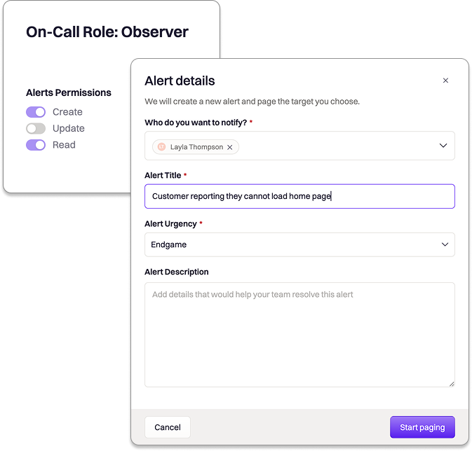 - Improve escalation coverage: Customer support, success, or adjacent engineering teams can page on-call teams directly.