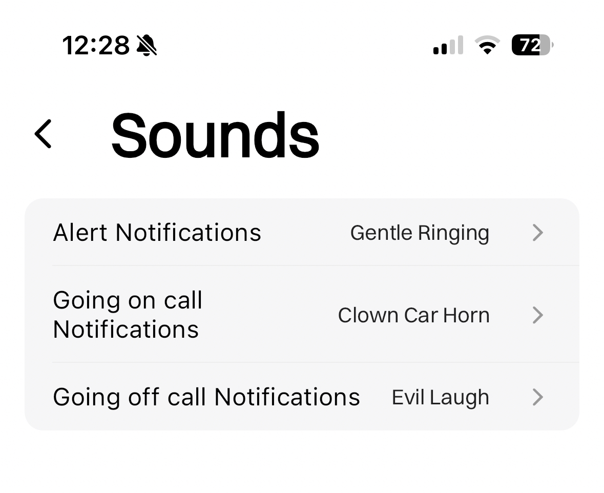 If you're a user of the Rootly mobile app, you can even customize the sound for your shift reminders from the app, under Settings > Sounds: