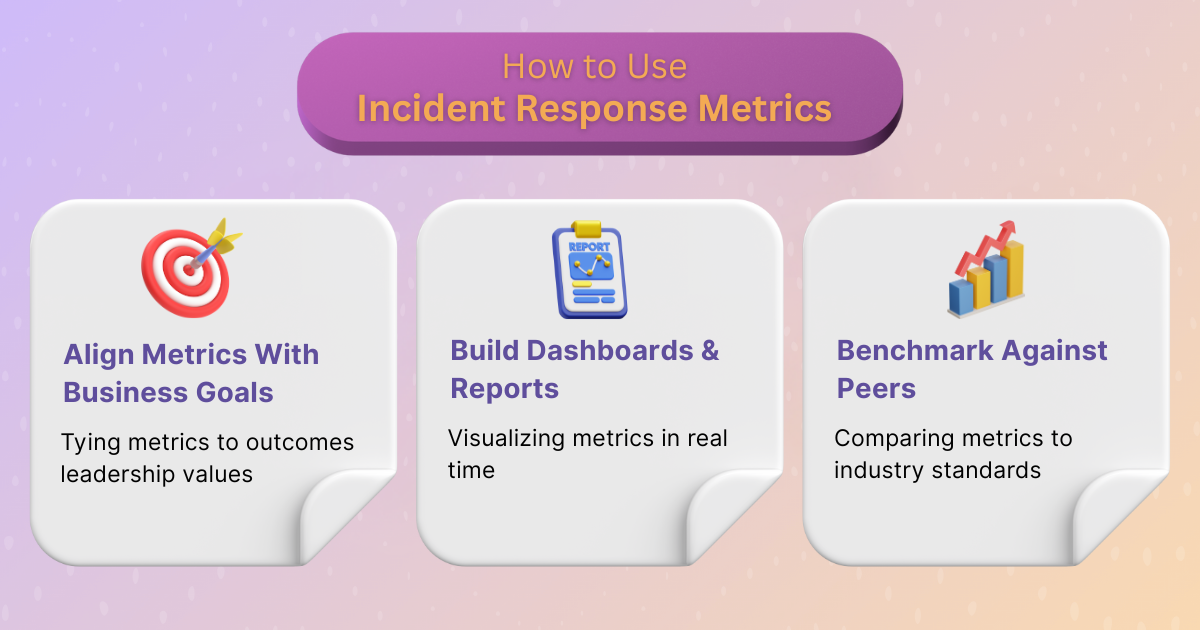 Metrics gain power when tied to outcomes leadership cares about. Faster detection reduces financial losses, improved MTTR keeps customer-facing apps online, and SLA compliance avoids penalties. Aligning metrics with compliance standards such as ISO, NIST, GDPR, and SOC2 adds further weight.