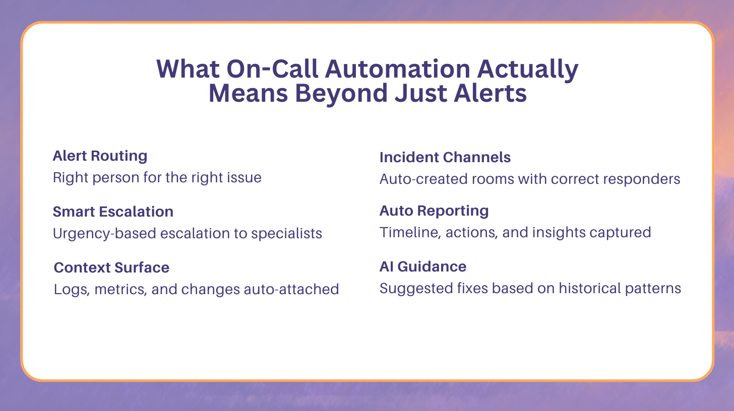 Automated on-call reduces burnout by cutting unnecessary alerts and shielding engineers from constant interruption.