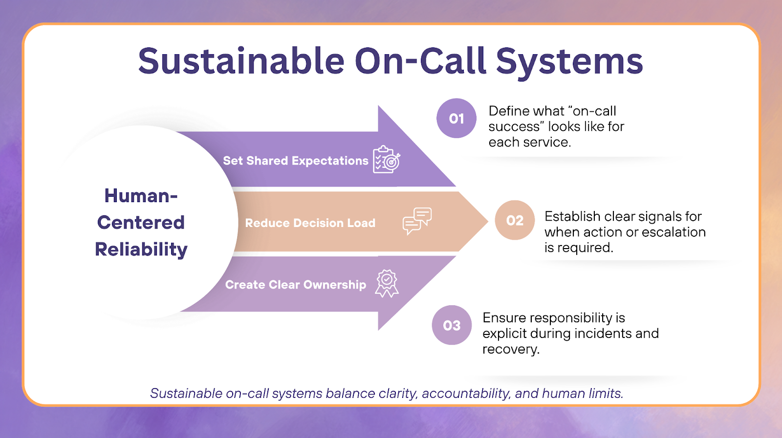 Effective leaders model healthy escalation, protect teams from unnecessary interruptions, and ensure reliability goals align with staffing and system maturity. They treat on-call health as a shared responsibility, not an individual burden.