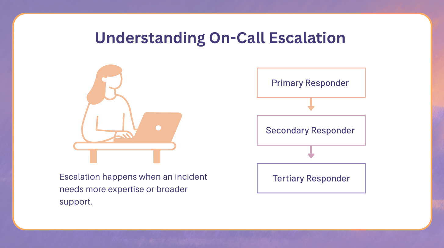 - Escalation in on-call enables faster resolution by involving the right expertise when complexity exceeds the primary responder’s scope.