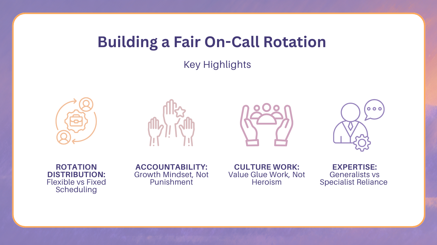 - Leadership’s attitude toward accountability shapes team culture, signaling whether on-call is collaborative learning or blame-based pressure.